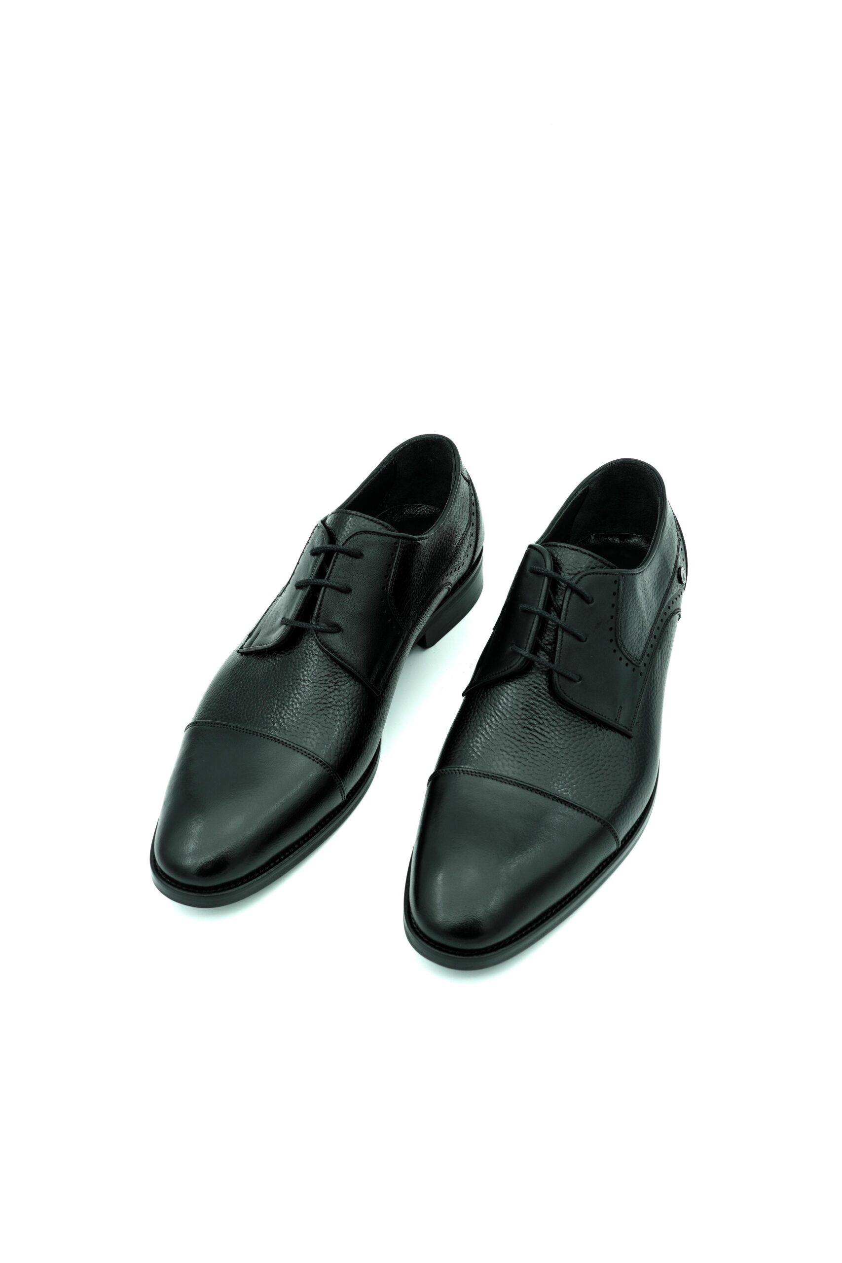 Inovatívne čierne poltopánky sú stvorené pre mužov, ktorí uprednostňujú sofistikovaný štýl. Ich dizajn, ktorý spája hladkú a hrubú kožu, je ešte viac podčiarknutý čiernou farbou, čo im dodáva určitú dávku tajomstva a elegancie.