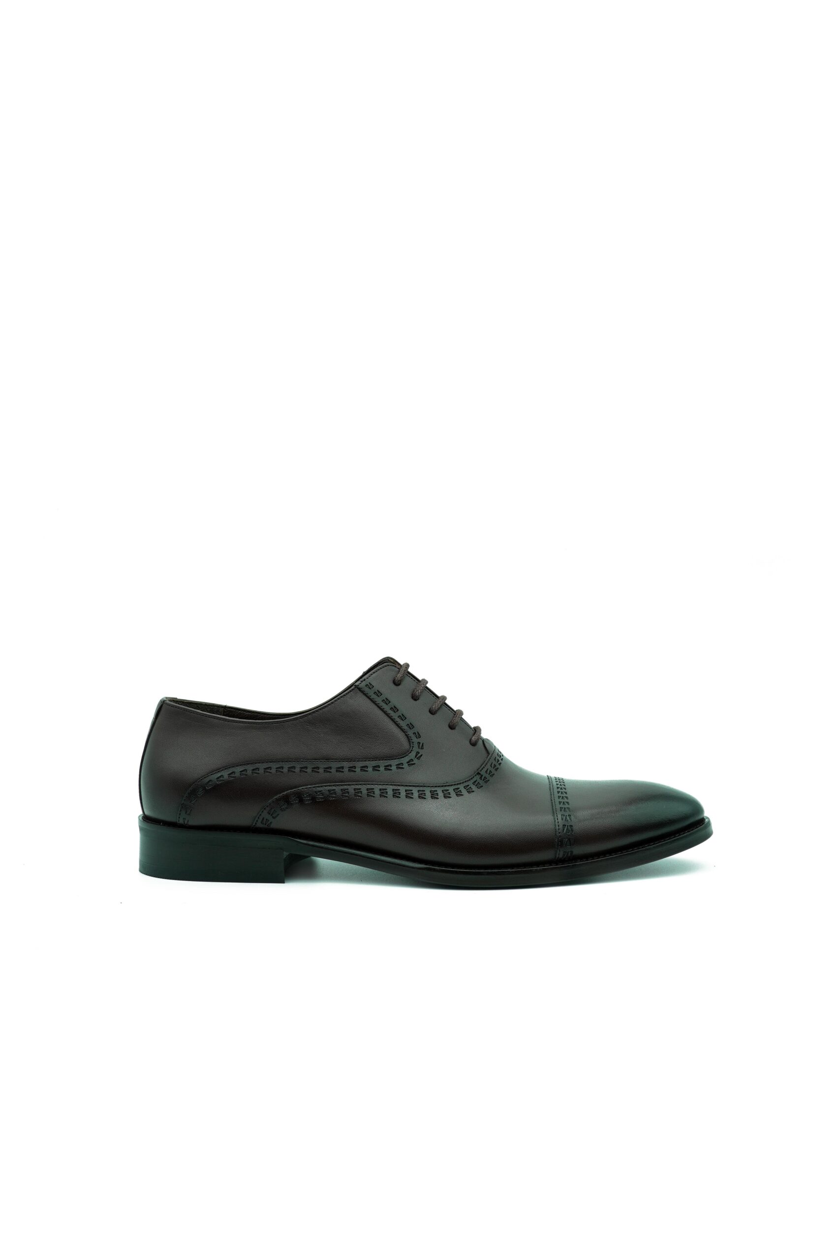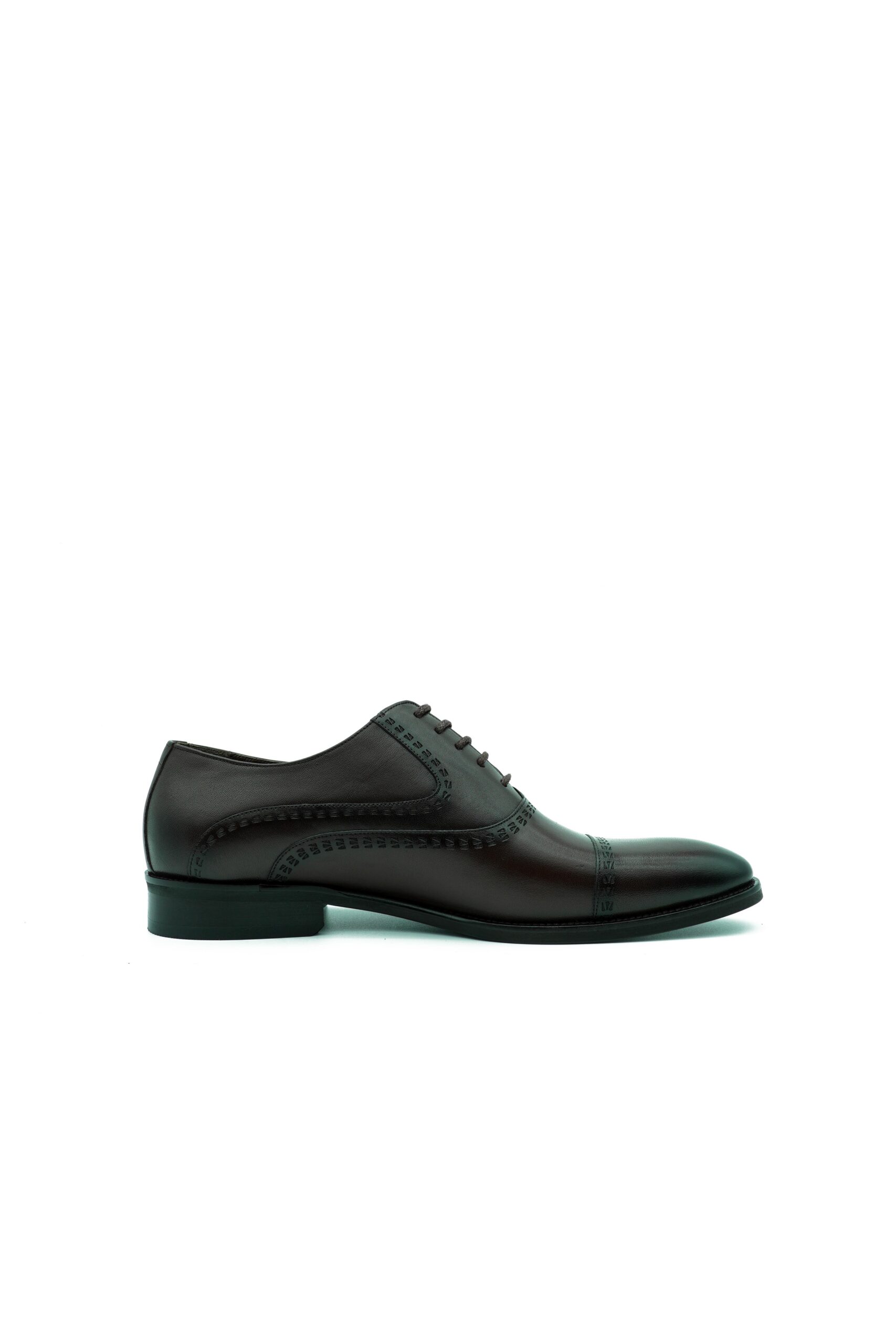 Tieto tmavohnedé šnurovacie topánky sú zo 100% kože. Lem šitia obopína jemný vzor, ktorý predstavuje spojenie elegancie a kvality. Ich hlboký odtieň zvýrazňuje jedinečnú estetiku a štýl. Každý krok v týchto topánkach je nielen výrazom vkusu, ale aj pocitu luxusu. V týchto výnimočných topánkach sa budete cítiť komfortne a moderne.