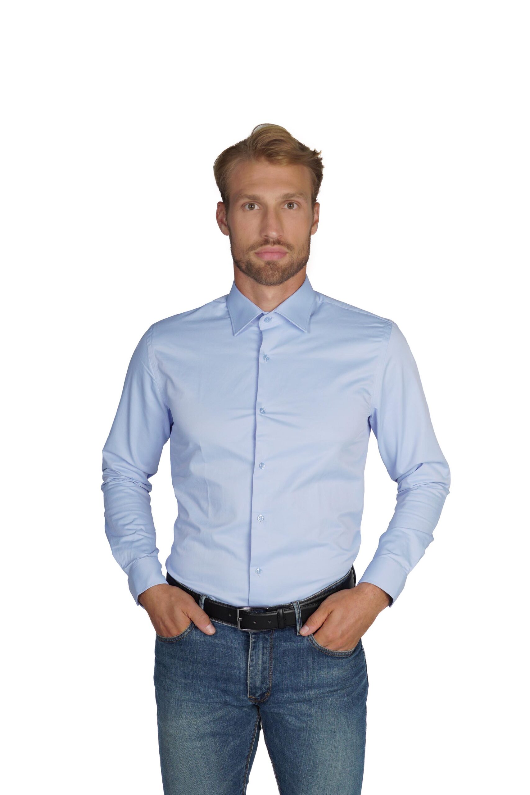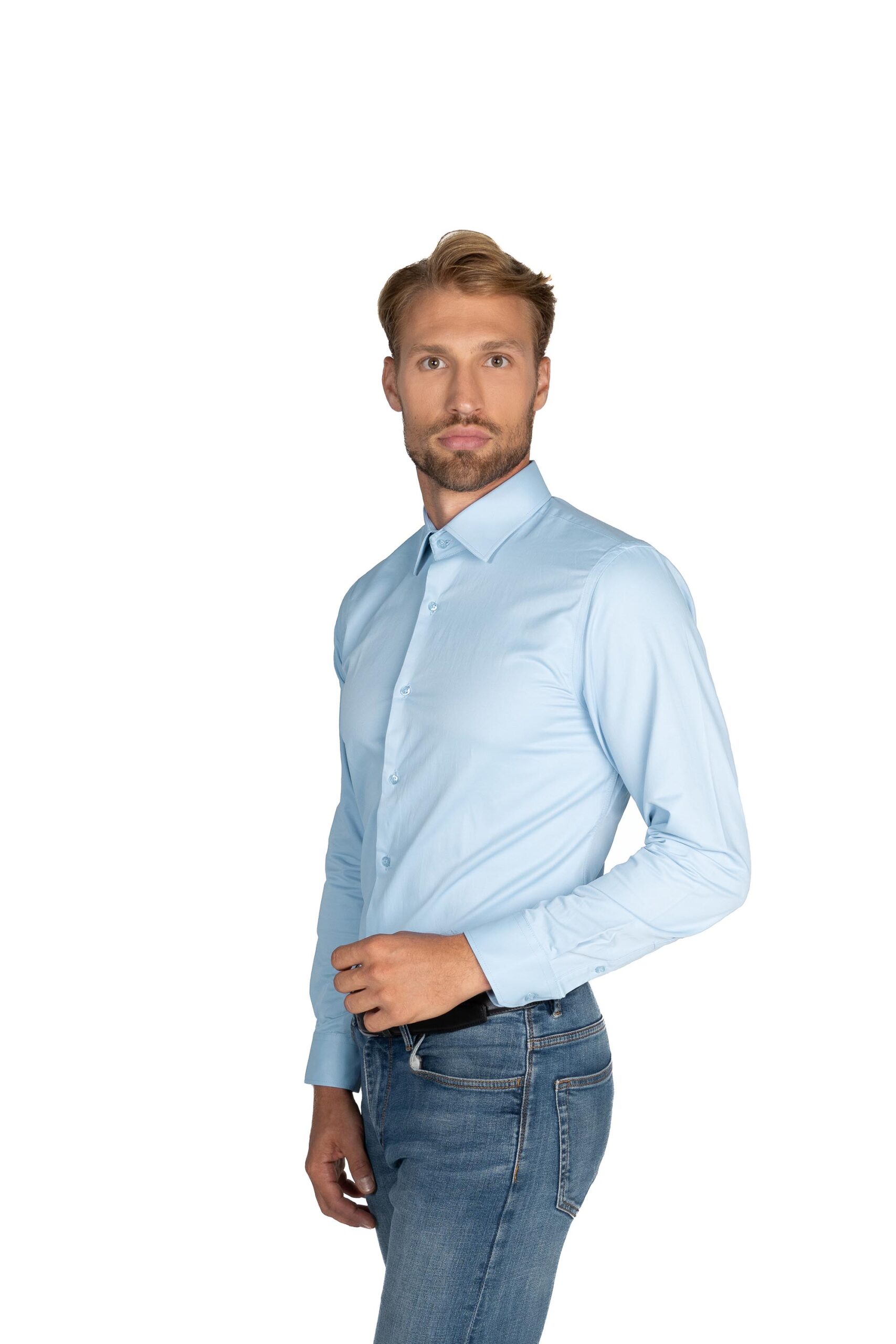 Táto svetlá modrá košeľa je symbol sviežosti a jemnej elegancie. Je vyrobená z ľahkého materiálu, ktorý zaručuje pohodlie pri nosení. Svetlá modrá farba je odleskom pokoja a dôvery. Táto košeľa je ideálnym doplnkom pre okamihy, keď chcete vyzerať vkusne a pritom si zachovať ľahkosť. Skvele sa hodí k džínsam pre neformálny vzhľad, ale aj k saku a nohaviciam pre elegantné príležitosti. Táto svetlá modrá košeľa vám umožní vyjadriť svoj vkus a jemnú eleganciu. Je to kúsok, ktorý vás bude sprevádzať v každom ročnom období a na rôznych spoločenských udalostiach. S touto košeľou budete vždy žiariť svetlom a štýlom.
