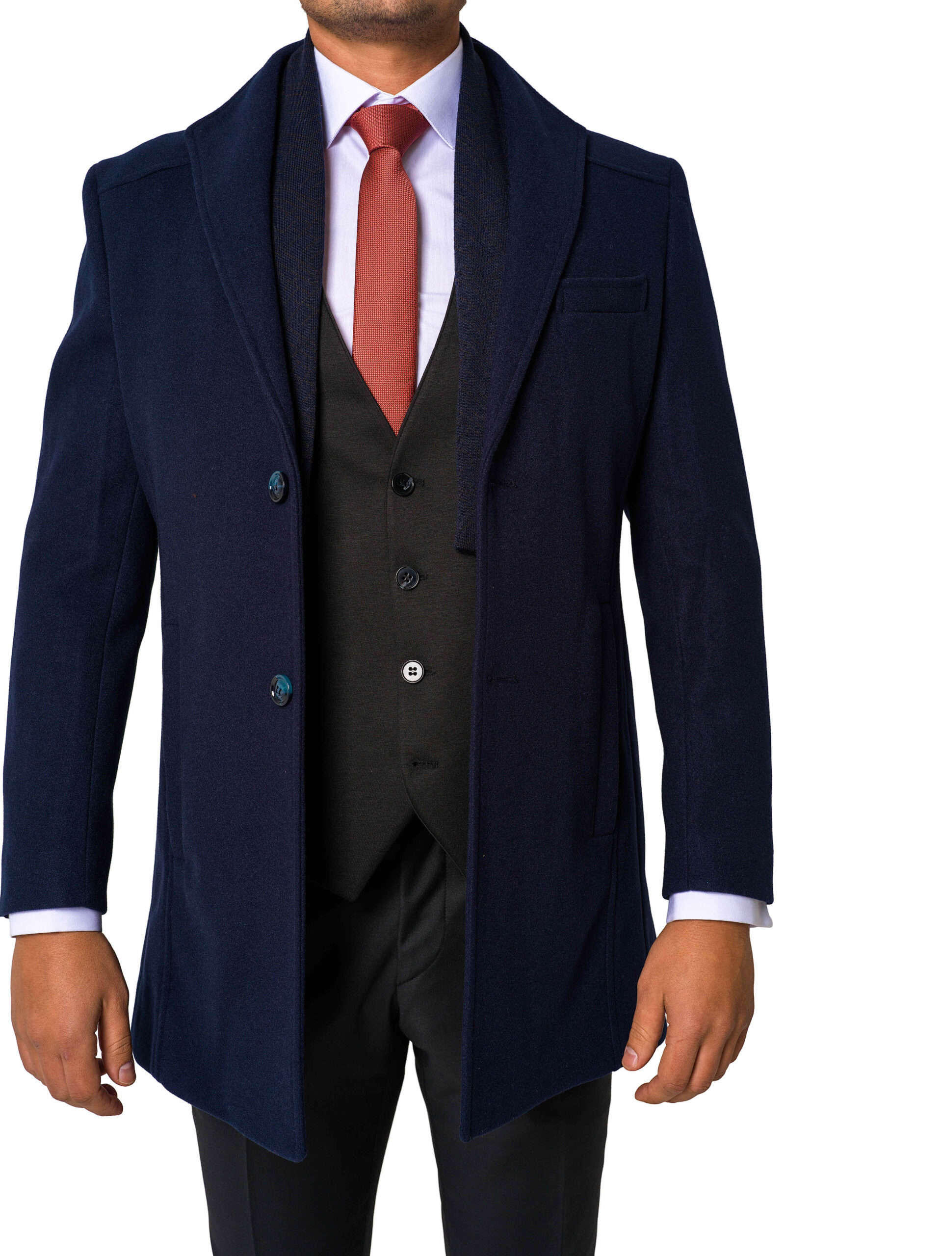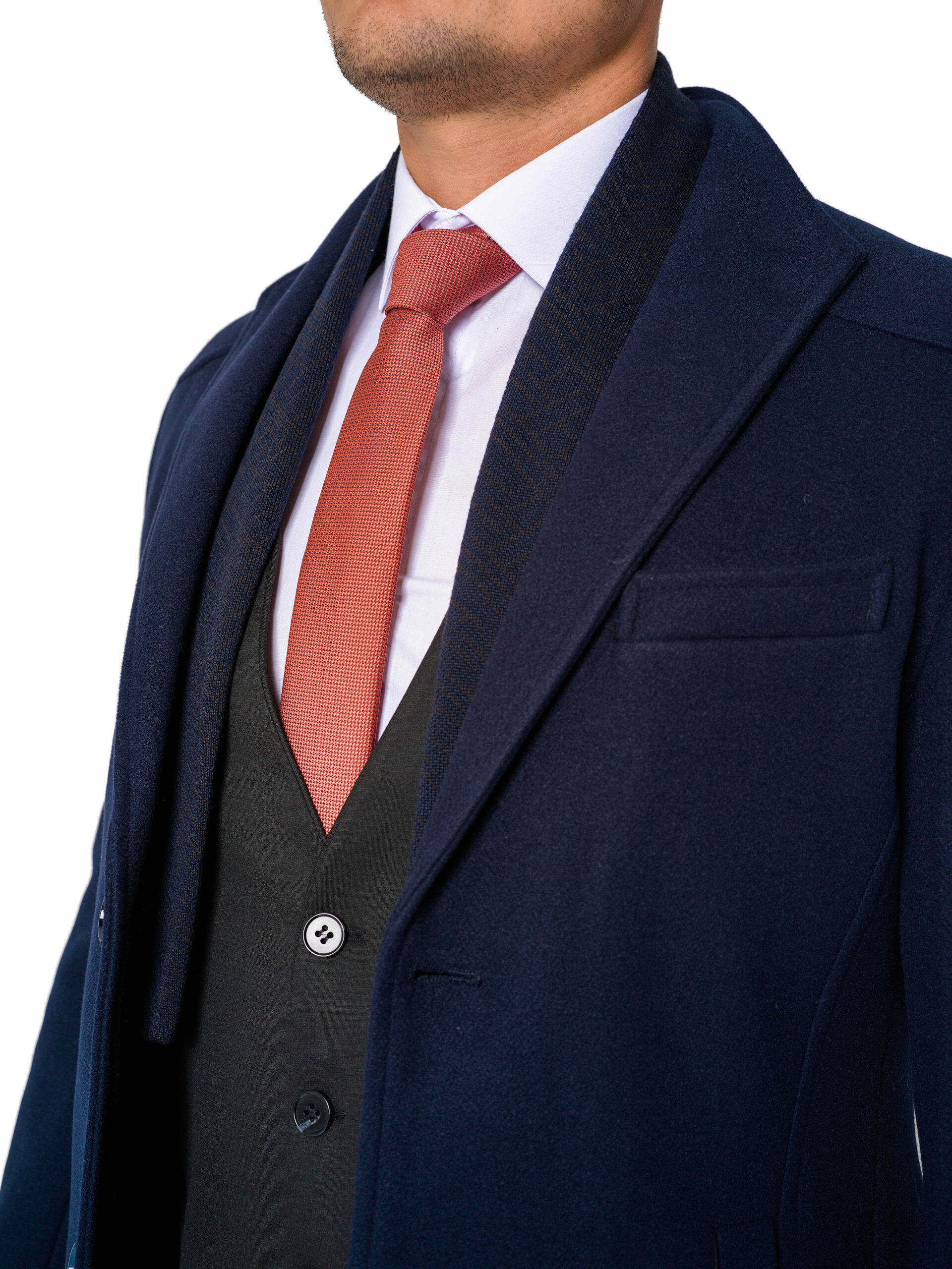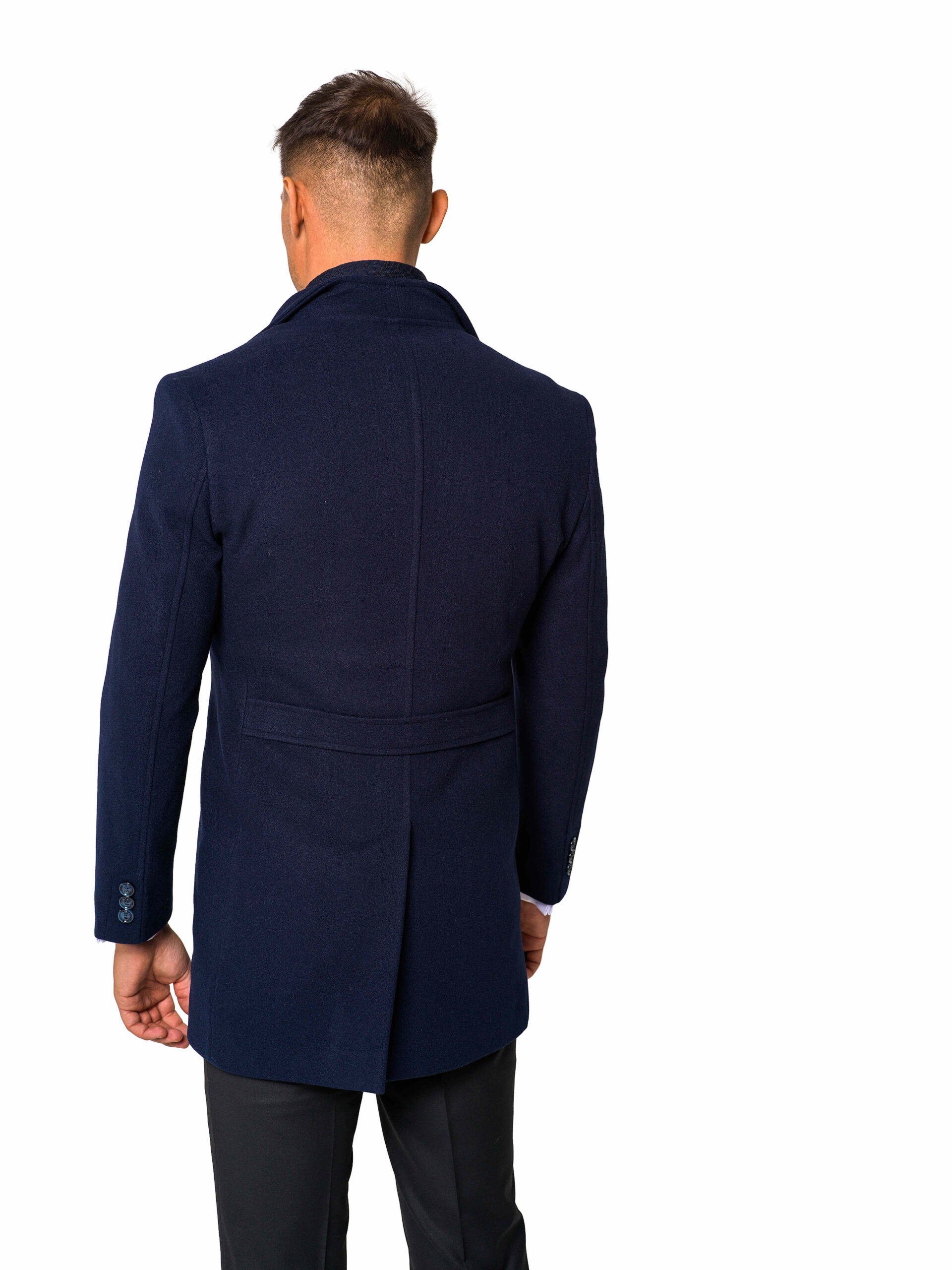 Kabát v tmavomodrom prevedení so zapínaním na dva gombíky a minimalistickou podšívkou pôsobí čisto a sofistikovane. Vďaka kontrastným detailom a precíznemu spracovaniu je ideálnym spoločníkom pre formálne príležitosti aj mestský štýl.