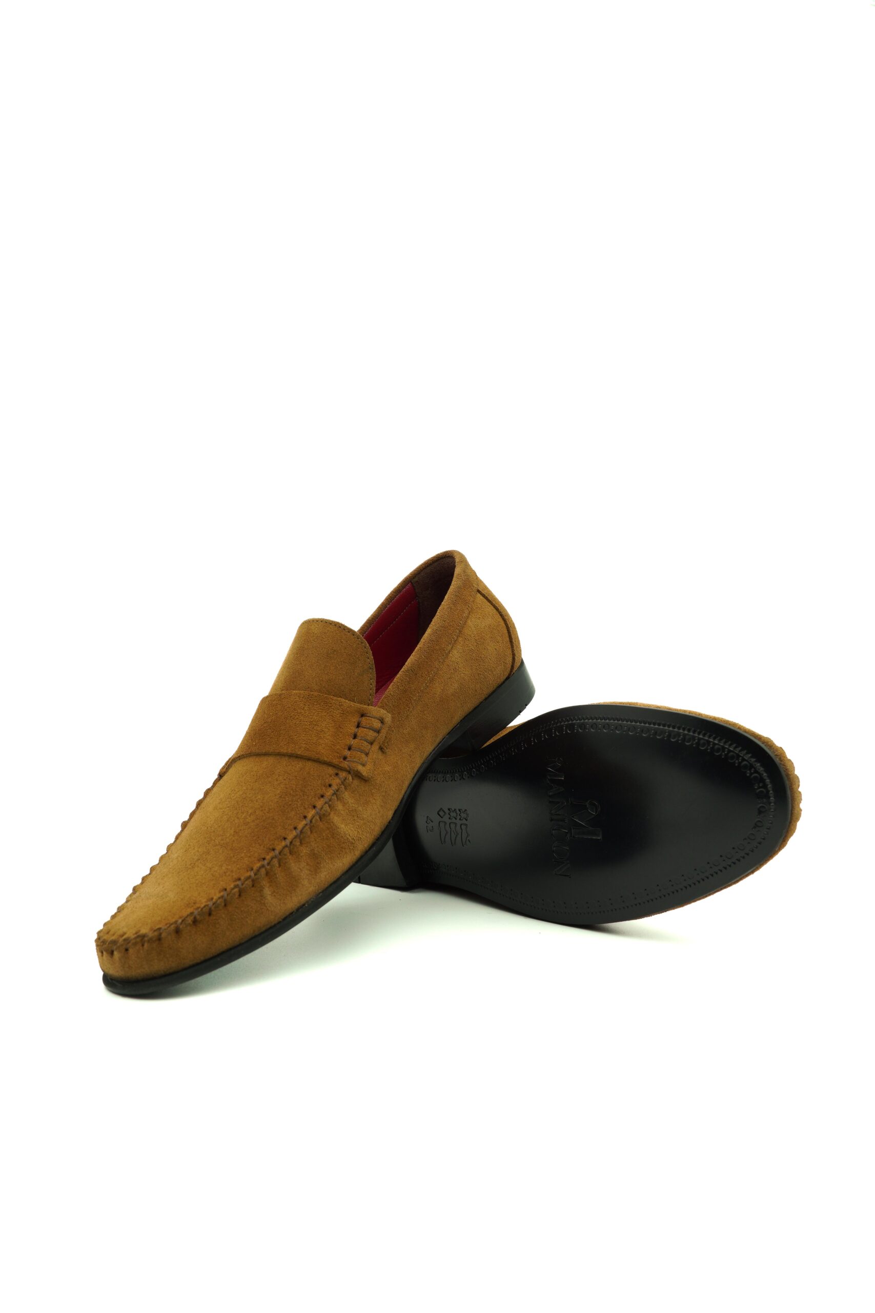 Tabakové mokasíny z brúsenej kože sú dychtivým spoločníkom pre každodenné dobrodružstvá. Ich jednoduchý, no elegantný dizajn je typický pre mokasíny, zatiaľ čo kvalitná brúsena koža dodáva príjemný dotyk luxusu. Jemné šitie po obvode topánok dotvára ich dokonalý vzhľad a zabezpečuje kvalitu. Tieto mokasíny sú pre mužov, ktorí uprednostňujú komfort a štýl vo svojej obuvi, no zároveň sú pripravené pre každodenné využitie s výnimočným pocitom pohodlia. Vďaka ich všestrannému štýlu sa môžu ľahko kombinovať s rôznymi outfitmi a sú ideálnym doplnkom pre každú príležitosť.