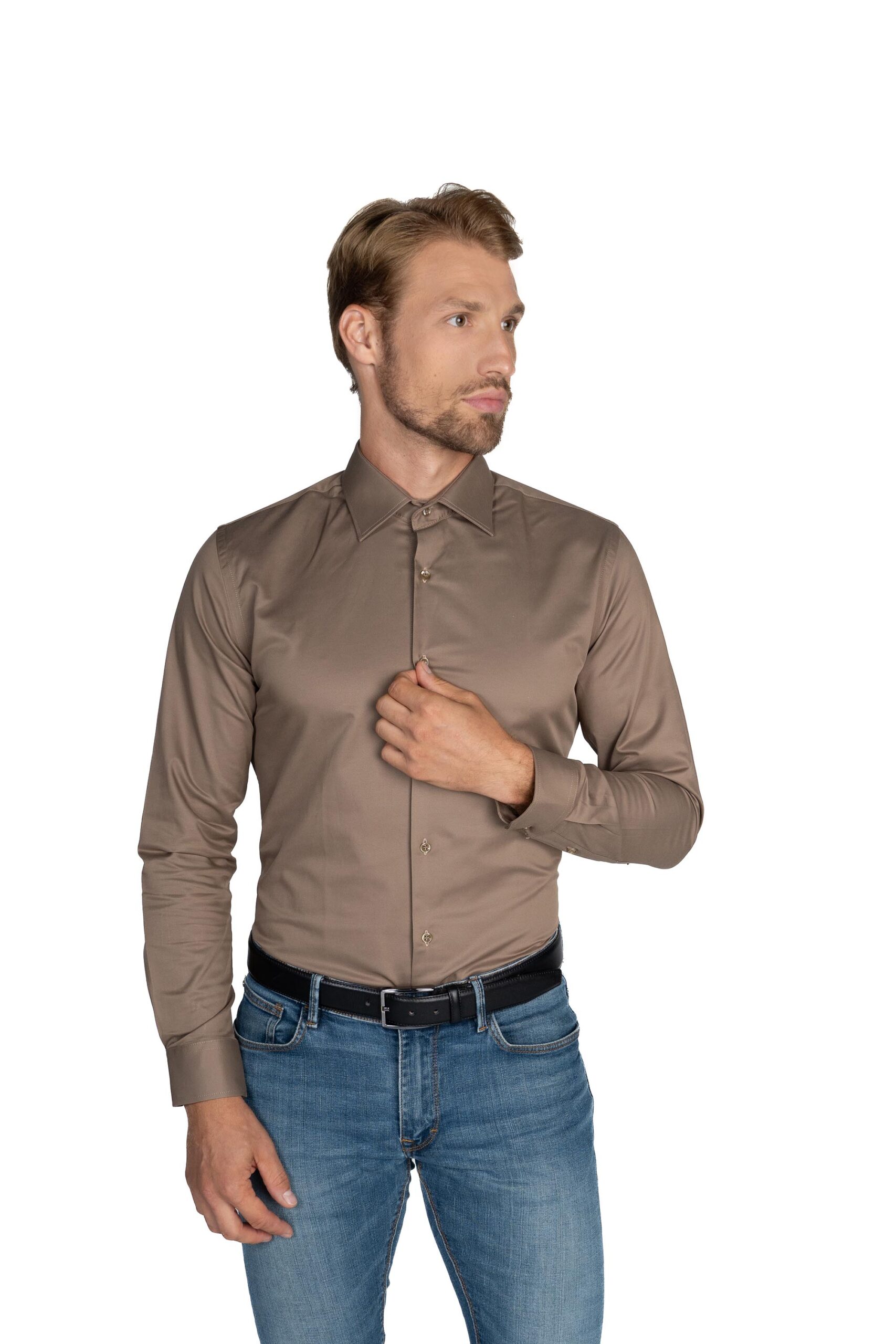 Hnedá košeľa bez štruktúry je prejavom jednoduchej elegancie a dôvery v seba. Hnedá farba je spojená s teplom a spoľahlivosťou a táto košeľa ju prináša do vášho šatníka v jej najlepšej podobe. Hladký materiál tejto košeľe sa skvelo prispôsobí vášmu štýlu a je ideálnou voľbou pre tých, ktorí ocenia dokonalý základ v ich šatníku. Hnedá košeľa bez štruktúry ponúka jednoduchú eleganciu, ktorá sa hodí na každú príležitosť. Je to farba, ktorá nikdy nezostarne a vždy vyjadruje váš vkus.