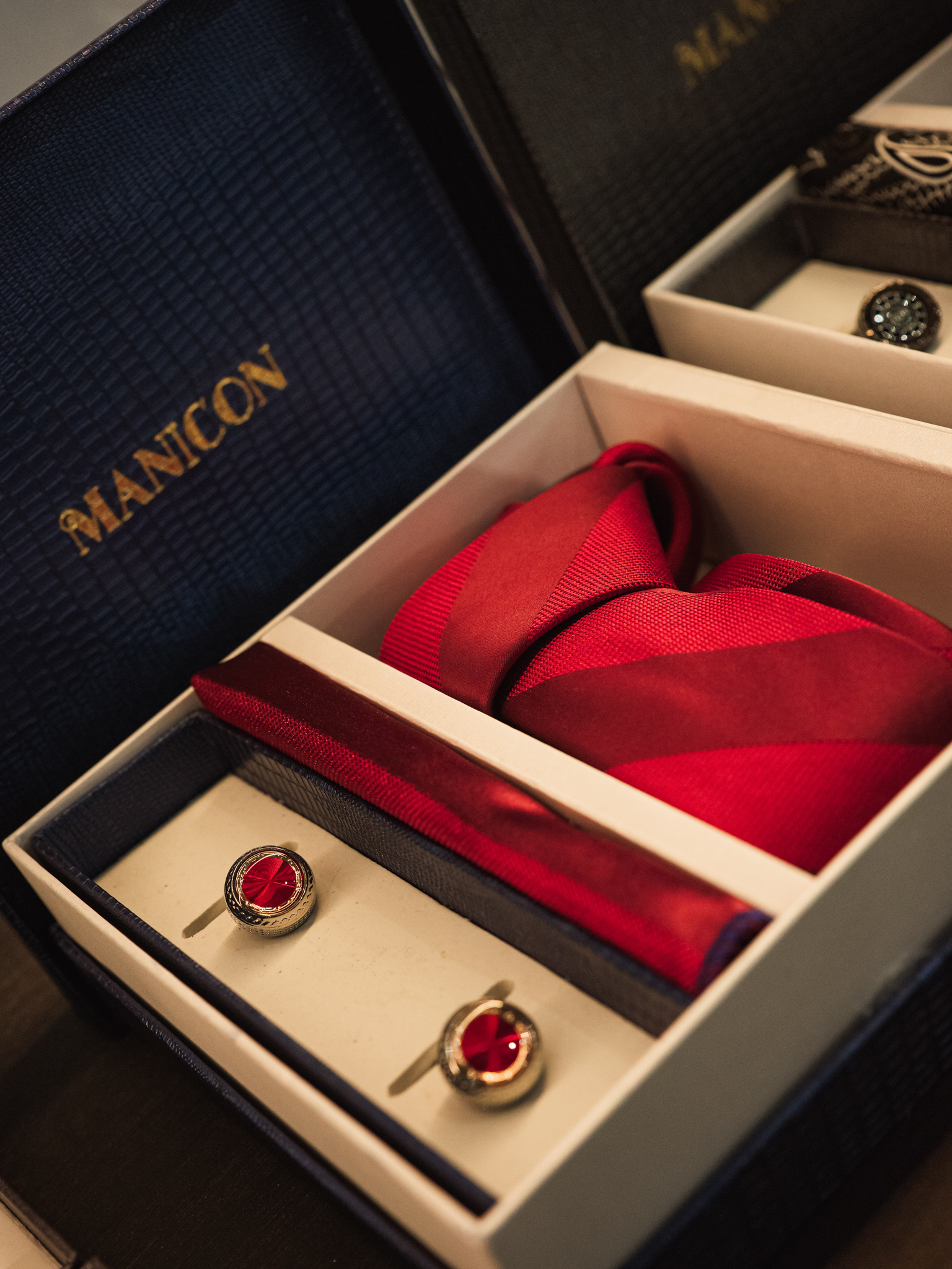 Popis: Tento elegantný set zahŕňa výraznú červenú kravatu, manžetové gombíky s detailom vo farbe kravaty a štýlovú vreckovku do saka. Je perfektným doplnkom pre odvážnych mužov, ktorí chcú zaujať na formálnych udalostiach. Vysoká kvalita a premyslený dizajn robia tento set ideálnym darčekom pre každého džentlmena.