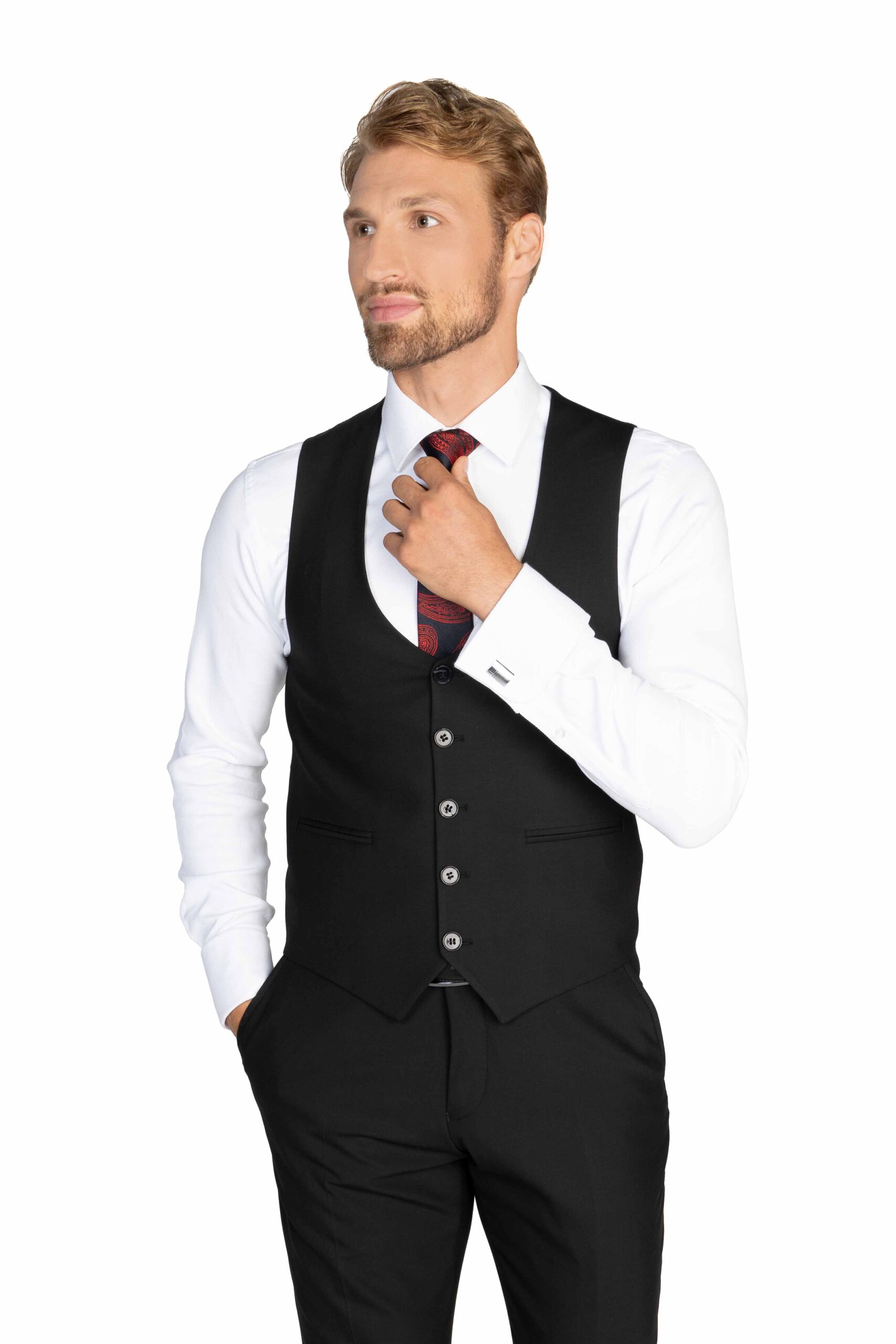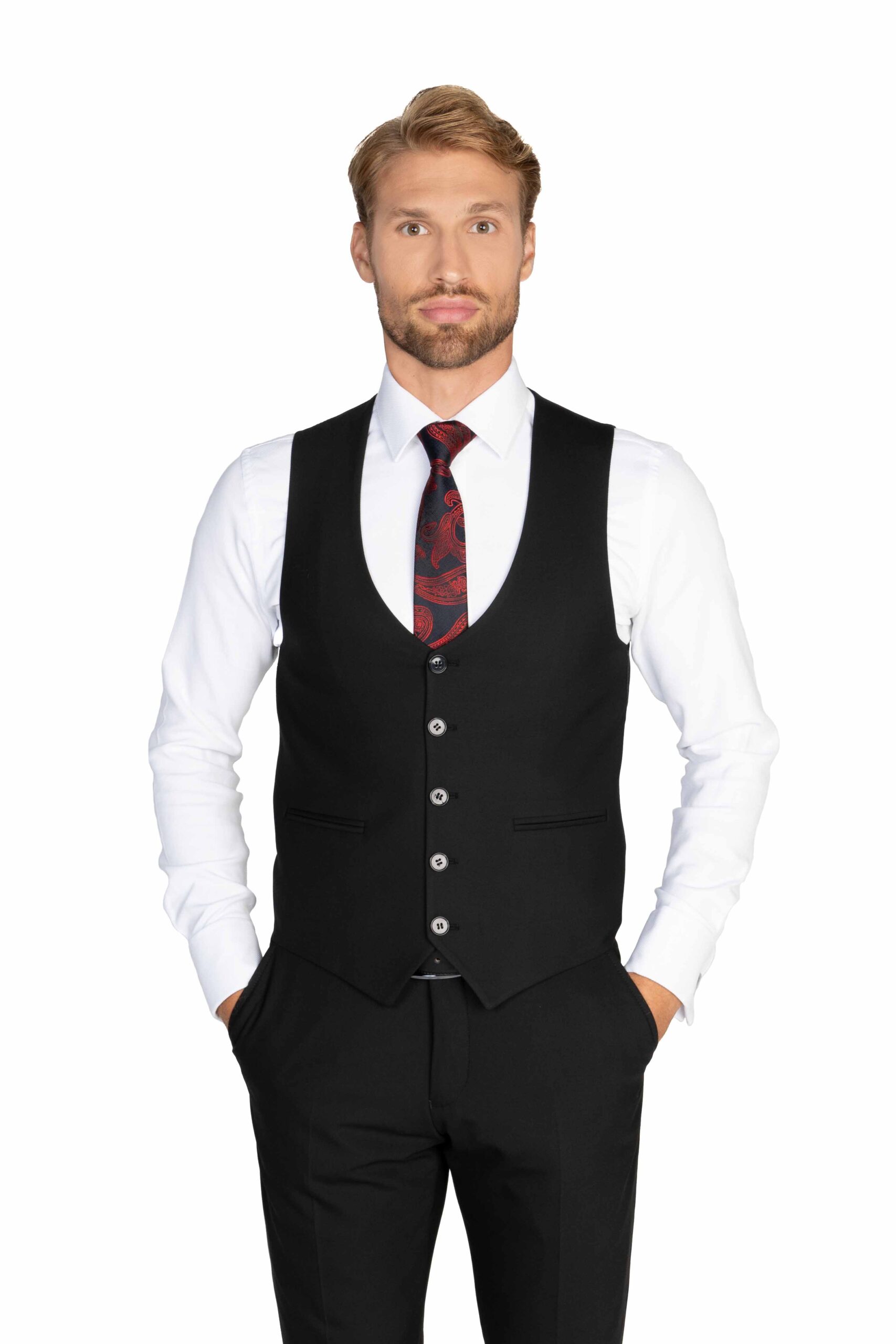 Čierny hladký oblek je univerzálnou voľbou, ktorú môžete využiť na každú príležitosť. Táto klasická voľba je nesmierne dôležitým kúskom v šatníku každého muža. Tento oblek je synonymom elegancie a vkusu a jeho čistý a hladký dizajn je nekonečne prispôsobiteľný. Či už ide o formálne udalosti, pracovné stretnutia alebo špeciálne príležitosti, čierny hladký oblek vám zabezpečí, že budete vždy dôveryhodne štýloví a vhodne oblečení. Tento oblek je základným pilierom módneho šatníka a jeho využiteľnosť je nekonečná. Jeho elegantný a výnimočný charakter pridáva vášmu vzhľadu na pravom oboch štýl a dôstojnosť. Bez ohľadu na to, či ho nosíte na pracovné stretnutia, večerné oslavy alebo formálne udalosti, čierny hladký oblek je nemenným symbolom štýlu a elegancie, ktorý nikdy nevyjde z módy.