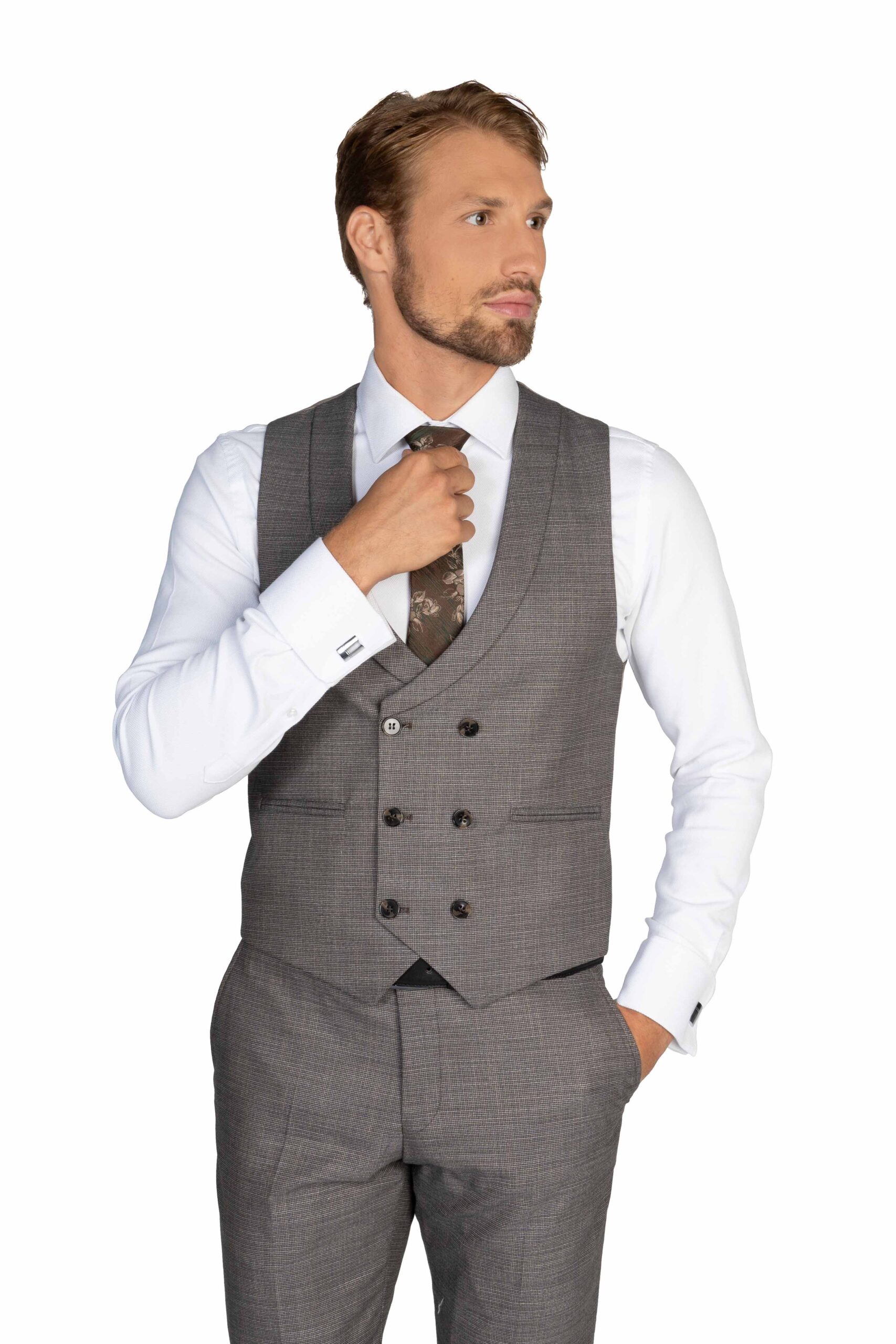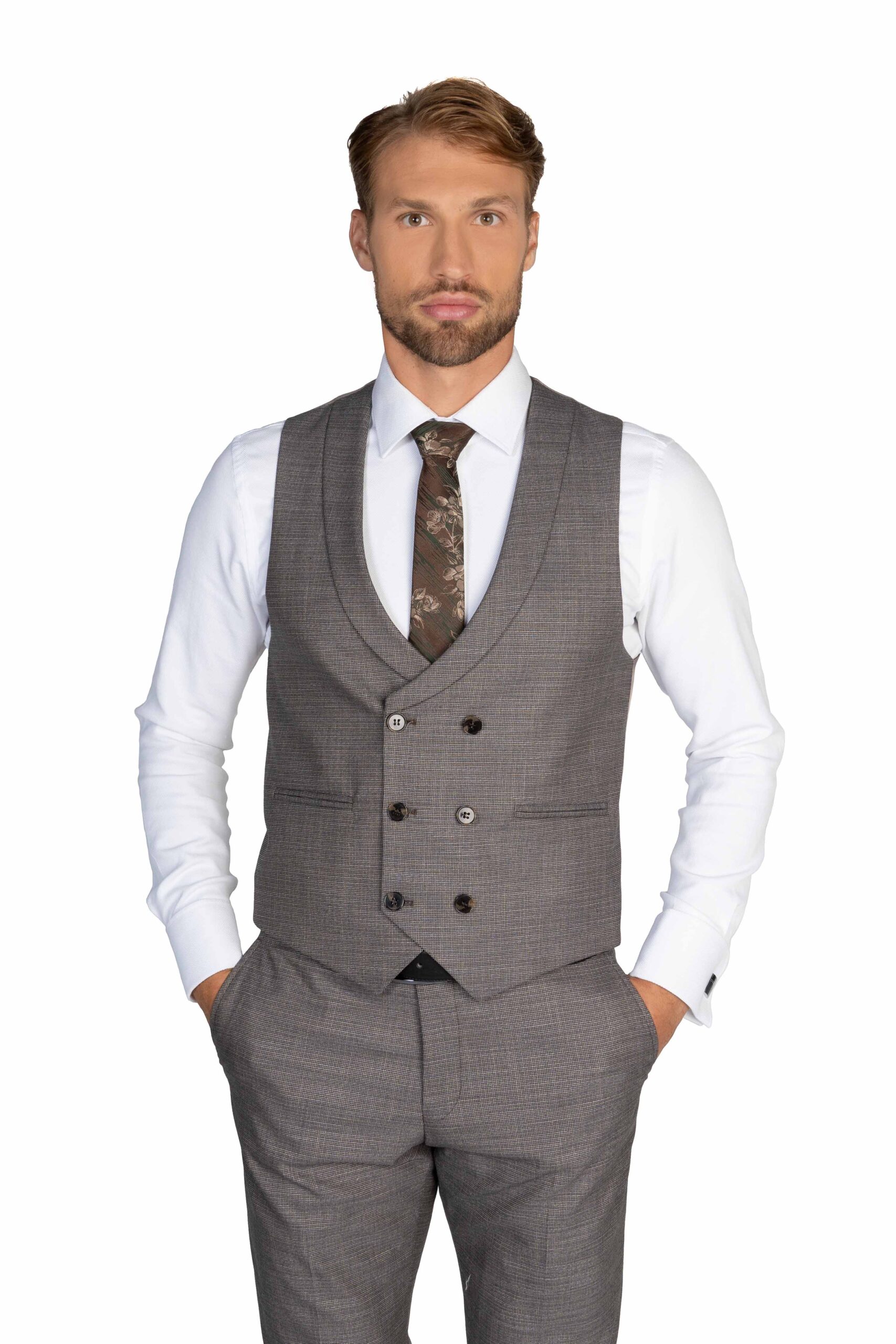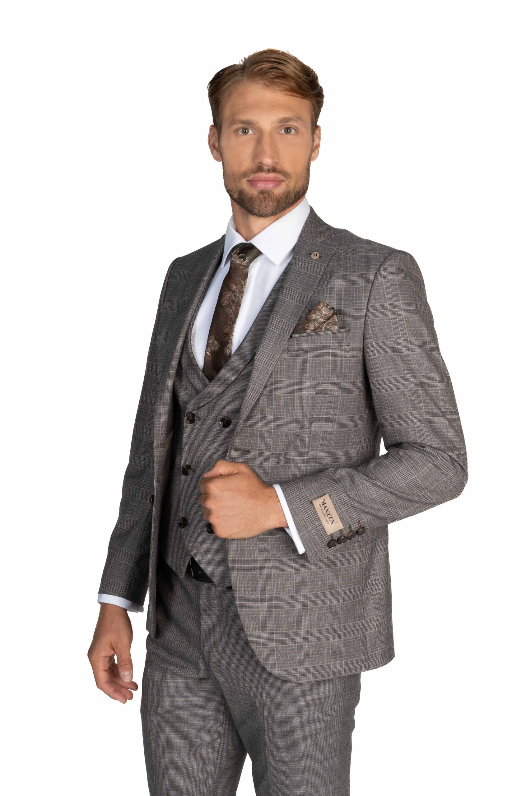 Tmavý sivý oblek s čiernym károvaním je prejavom jemnosti a elegancie, ktorý nikdy nevyjde z módy. Jednoradové sako dodáva outfitu pôvab a moderný vzhľad, pričom dve vrecká dodávajú praktický rozmer. Dvojradová vesta pridáva obleku vrstvu prestíže, zatiaľ čo nohavice so štruktúrou pridávajú celému outfitu hmatateľný rozmer. Tento kombinovaný outfit s tmavým sivým oblekom a čiernym károvaním je výnimočným prejavom jemnosti a rafinovanosti. Je to voľba pre mužov, ktorí si radi obliekajú obleky s osobitosťou a šarmom. Či už ide o pracovné stretnutia, formálne udalosti alebo spoločenské príležitosti, tento outfit vám zaručí, že budete vždy vyzerať elegantne a vkusne.