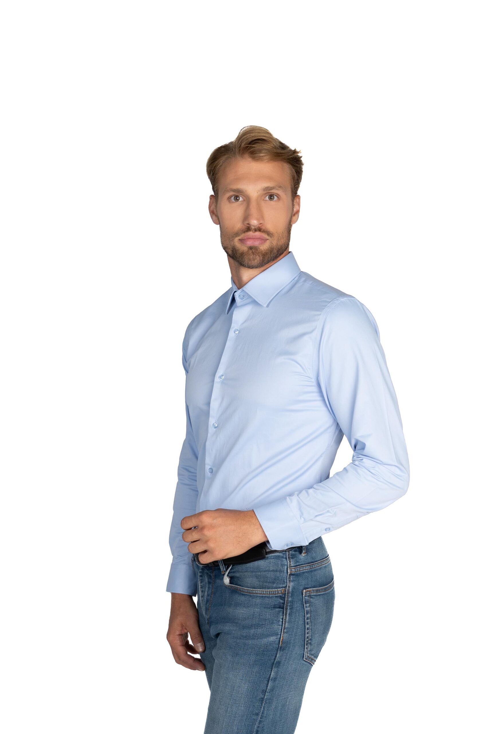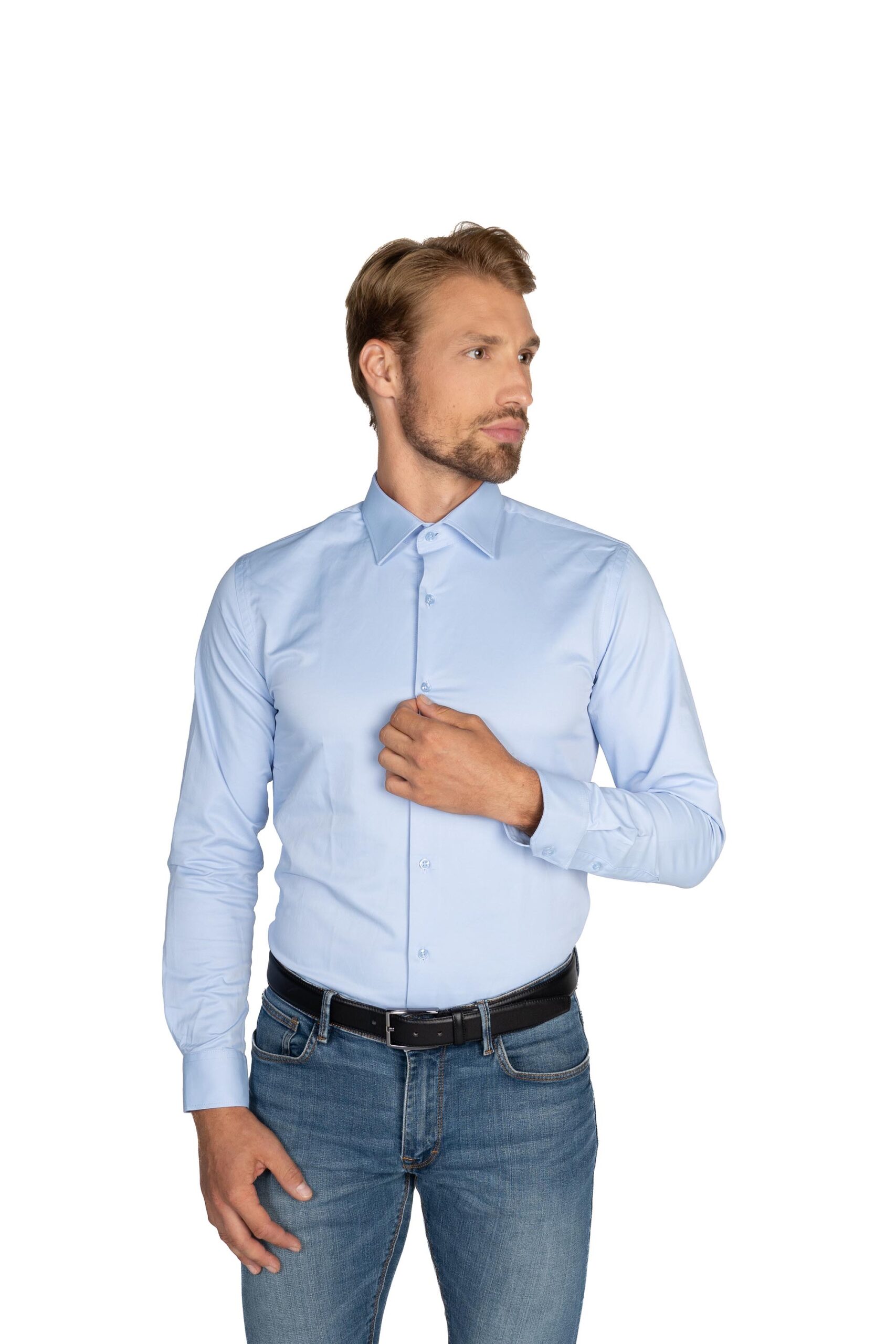 Azúrovo svetlomodrá košeľa, hladká a bez textúry, je zrkadlom harmónie medzi športovým duchom a eleganciou. Je to farba, ktorá vás osvieži a prinesie nový dych. Táto košeľa sa výborne hodí do kombinácie športového štýlu s eleganciou, čo ju robí viacstrannou voľbou pre rôzne príležitosti. Je to košeľa pre mužov, ktorí chcú zároveň vyzerať uvoľnene a štýlovo. S jej azúrovým odtieňom vyjadruje sebavedomie a vkus. Azúrovo svetlomodrá košeľa je jednoducho osviežujúca voľba pre vaše formálne aj neformálne outfity.